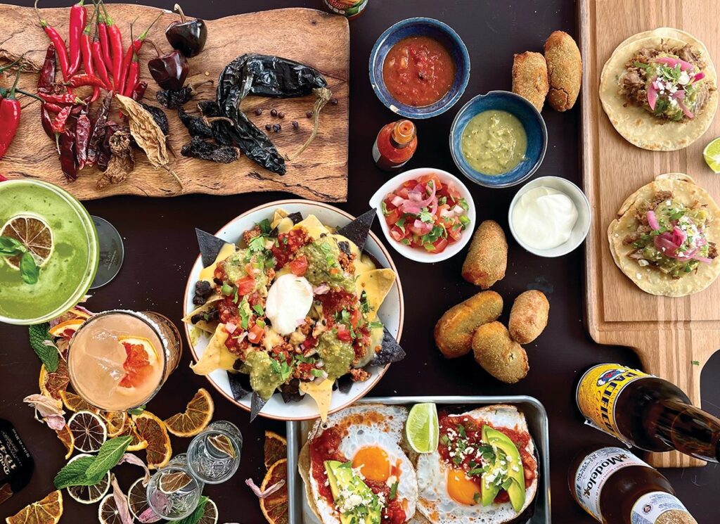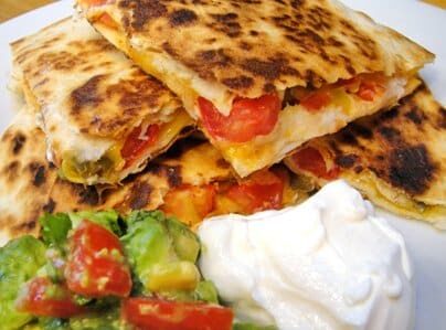 Quesadilla – Crisp tortilla slices packed with melted cheese, bean chillie, sweetcorn salsa, pico de gallo and coriander. Choose from Veggie, Chicken, Beef or Pork
